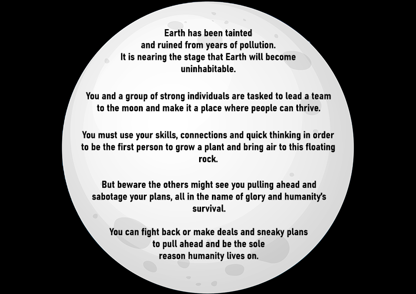 You and a group of strong individuals have been tasked with leading a team to the moon and making it a place where people can thrive.